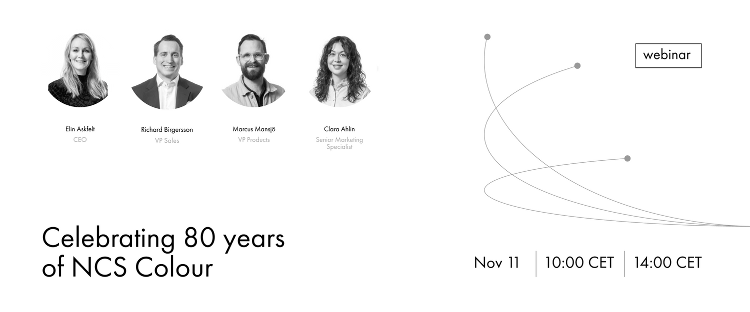 The session will be a panel discussion featuring Elin Askfelt (CEO, NCS), Richard Birgersson (VP Sales, NCS) and Marcus Mansjö (VP Products, NCS), moderated by Clara Ahlin (Senior Marketing Specialist, NCS). With two time slots available, it’s easy to join from anywhere in the world. This is both a celebration of where we’ve been, and a forward-looking conversation about the future together in colour.