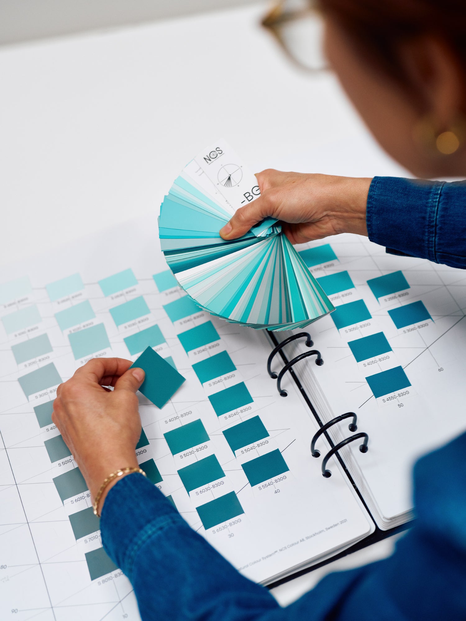 A compact, fan-style format with all 2,050 NCS colours grouped by hue or nuance. NCS Block 2050 supports fast, accurate colour comparison and is ideal for mobile consultations, design reviews, and customer-facing settings.
